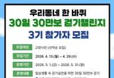 고양시 일산동구보건소, 고양시민건강센터중산 '우리동네 한 바퀴 30일 30만보 걷기챌린지' 3기 참가자 모집