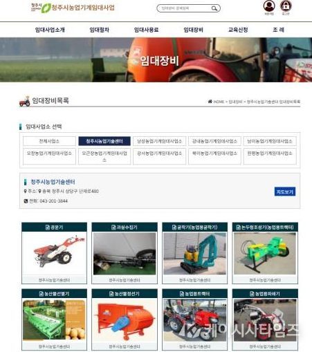 농기계 임대사업과 온라인 예약 관련 문의는 청주시농업기술센터 농업기계팀으로 하면 된다.