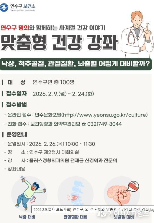 (케이시사타임즈) 연수구는 지역 주민에게 신뢰도 높은 건강 정보를 제공하기 위해 관내 의‧약 단체와 협력해 ‘맞춤형 건강강좌 사업’을 본격 추진한다.