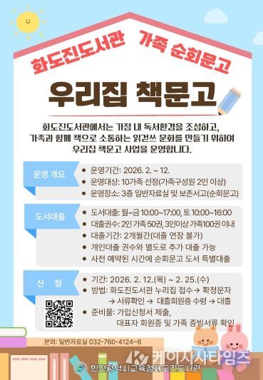 화도진도서관 관계자는“가족이 함께 책을 읽고 소통하는 독서 환경을 만들고자 한다”며 “앞으로도 시민의 일상에 책이 스며들도록 다양한 서비스를 확대하겠다”고 밝혔다.