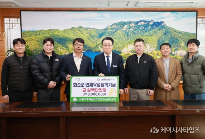 (케이시사타임즈) 화순군은 지난 9일 한국후계농업경영인 화순군연합회(회장 이태수)가 지역인재 육성을 위해 화순장학회에 장학금 300만 원을 기탁했다고 밝혔다.