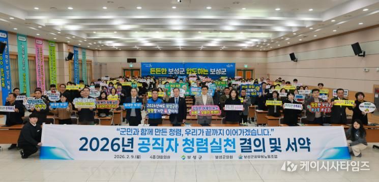 (케이시사타임즈) 보성군은 지난 9일 보성군청 대회의실에서 보성군, 보성군의회, 보성군공무원노동조합이 공동 참여한 ‘2026년 반부패·청렴 실천 결의 및 서약식’을 개최했다고 밝혔다.
