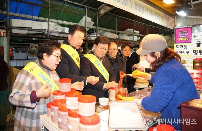 (케이시사타임즈) 전북특별자치도의회는 설 명절을 앞둔 10일 군산 주공시장을 방문해 전통시장 상인들을 응원하며, 시장 활성화를 위한 장보기 행사와 이용 캠페인을 진행했다.