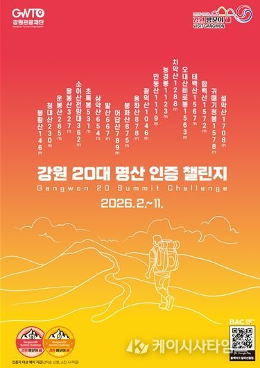 (케이시사타임즈) 강원특별자치도와 강원관광재단은 오는 2월 23일부터 11월까지 ‘강원 20대 명산 인증챌린지’를 운영한다.