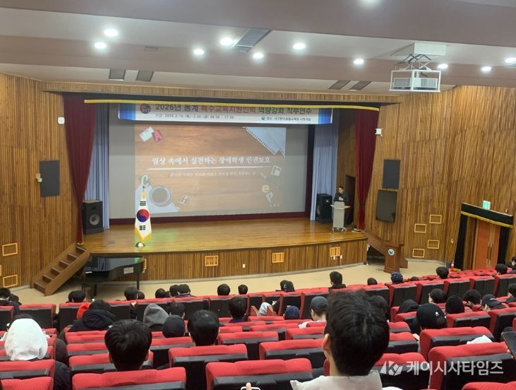 (케이시사타임즈) 대구시교육청은 2월 19일부터 2월 26일까지 6일간, 특수교육실무원, 사회복무요원, 늘봄전담(실무)사 등 890여명을 대상으로 ‘특수교육지원인력 역량강화 직무연수’를 운영한다.