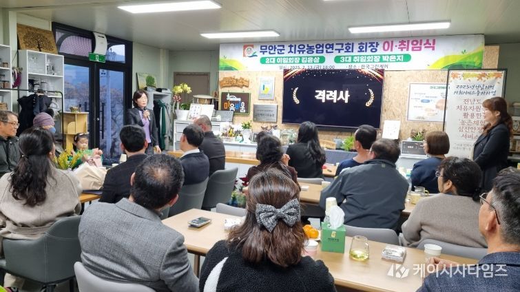 (케이시사타임즈) 무안군은 지난 13일 청계면 소재 ‘한국그린케어 치유농장’에서 치유농업연구회 회원 등 20여 명이 참석한 가운데 무안군 치유농업연구회 회장 이·취임식을 개최했다고 밝혔다.