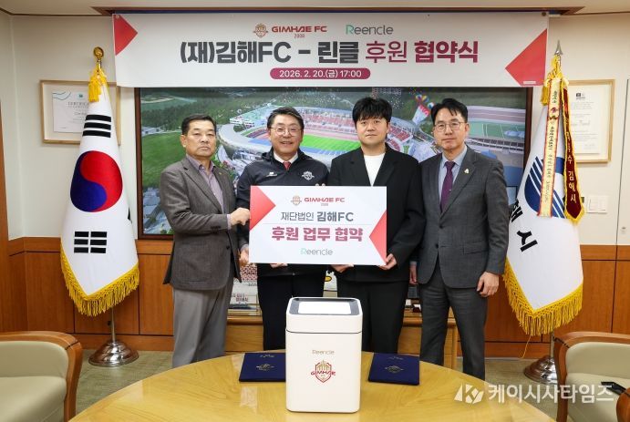 (케이시사타임즈) 재단법인 김해FC가 지역 내 혁신 기업과의 파트너십을 통해 구단 경쟁력 강화와 지역 상생이라는 두 마리 토끼 잡기에 나섰다. 김해FC는 20일, 가정용 음식물처리기 전문 브랜드인 ‘린클(Reencle)’과 공식 후원 협약을 체결했다고 밝혔다. 이번 협약은 김해FC의 중장기 발전 5대 전략 중 하나인 브랜드 협력 프로젝트의 핵심 사업, ‘아이언 유니티 네트워크(Iron Unity Network)’ 구축의 일환으로 성사됐다.