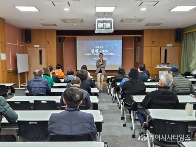 퇴직자 및 지역 주민 40여 명이 참가한 가운데 2026년 주요 경제 전망과 주민들이 꼭 알아야 할 재테크 전략에 대한 주제로 진행됐다.