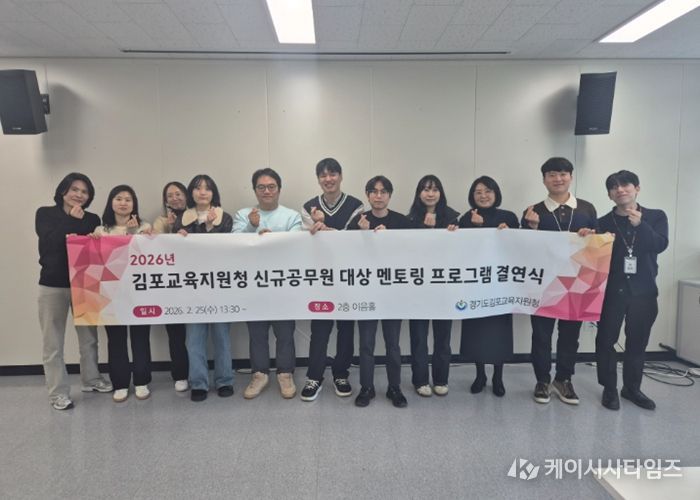 (케이시사타임즈) 김포교육지원청은 25일 신규공무원의 안정적인 공직 적응과 직무 전문성 강화를 위한 멘토링 프로그램 결연식을 개최하고 본격적인 운영에 들어갔다.
