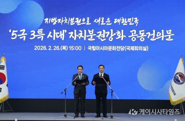 (케이시사타임즈) 대한민국시장·군수·구청장협의회는 2월 26일 광주 국립아시아문화전당에서 민선8기 4차년도 제3차 공동회장단회의를 개최하고,『5극3특 시대 자치분권 강화 공동건의문』을 발표했다.
