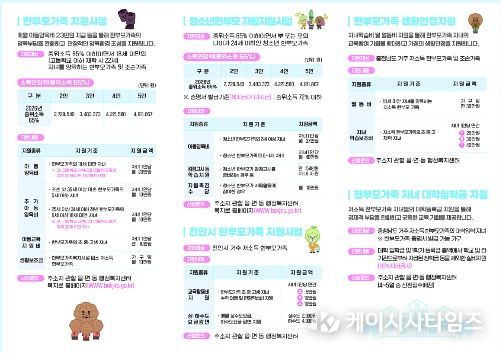 박경미 여성가족과장은 “복잡한 지원 정보 중 한부모가족에게 꼭 필요한 내용을 한 장에 담는 데 주력했다”며 “한부모가족이 안정적인 환경에서 아이를 키울 수 있도록 빈틈없는 안내와 홍보를 이어가겠다”고 말했다.