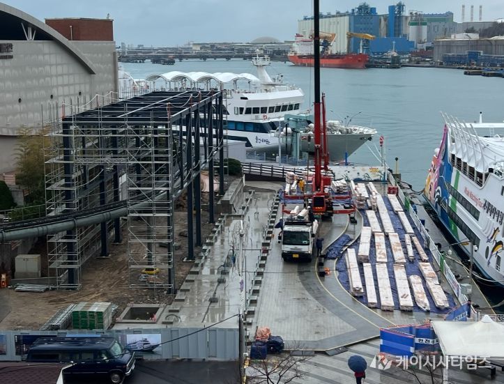 2025년 10월 착공 후 현재 공정률 60%를 기록하고 있으며 현재는 목재의 부식 방지를 위한 도장 작업과 미디어 터널 외장재와 LED 부착을 위한 기초 구조물 공사를 진행 중이다.