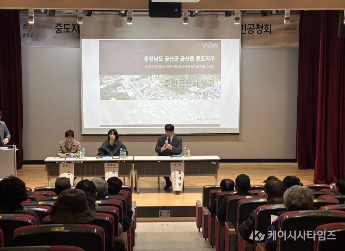 (케이시사타임즈) 금산군은 국토부의 노후주거지정비 지원사업 공모 신청을 위해 2월 27일 금산읍 소재 청산회관에서 금산읍 중도지구 노후주거지정비 지원사업 공청회를 개최했다.