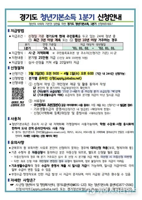 (케이시사타임즈) 동두천시는 2026년 1분기 청년기본소득 신청․접수를 3월 3일부터 4월 1일까지 한 달 간 접수한다고 밝혔다.