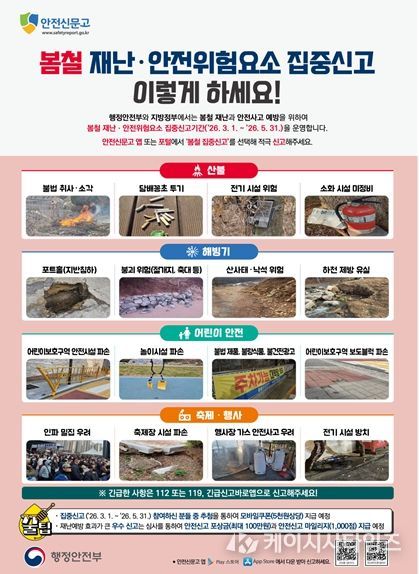 봄철 집중신고 대상은 ▲산불 ▲해빙기 ▲어린이 안전 ▲축제·행사 등 봄철에 위험 발생 가능성이 높은 4개 분야다.