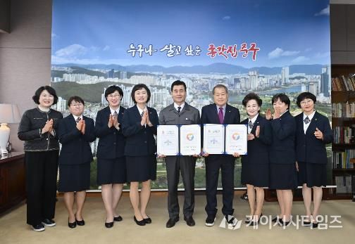 (케이시사타임즈) 울산 중구와 울산안전생활실천시민연합이 3월 5일 오후 2시 중구청 구청장실에서 ‘안전취약계층 시민생활안전교육’ 운영을 위한 업무협약을 맺었다.