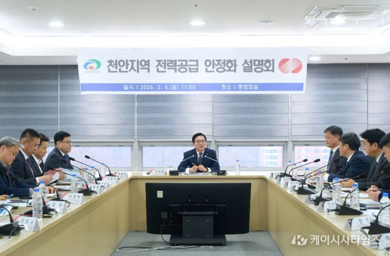 (케이시사타임즈) 천안시는 6일 시청 중회의실에서 한국전력공사 대전세종충남본부와 함께 ‘천안지역 전력공급 안정화를 위한 설명회’를 개최하고 중장기 전력 인프라 확충 방안을 논의했다.