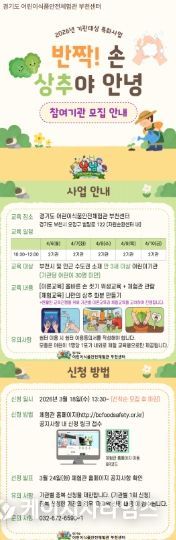 교육 모집 대상은 부천시 및 인근 수도권 소재 어린이 기관으로 3월 18일부터 체험관 홈페이지를 통해 선착순으로 참여기관을 모집한다.