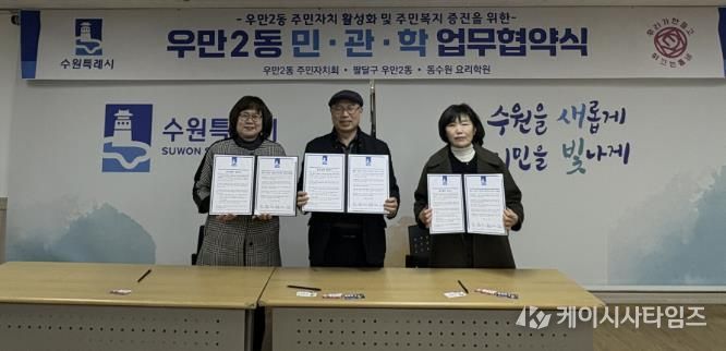 (케이시사타임즈) 수원시 팔달구 우만2동 주민자치회는 지난 10일, 우만2동‧동수원요리학원과 함께 협력사업 추진을 위한 민‧관‧학 협약을 체결했다.
