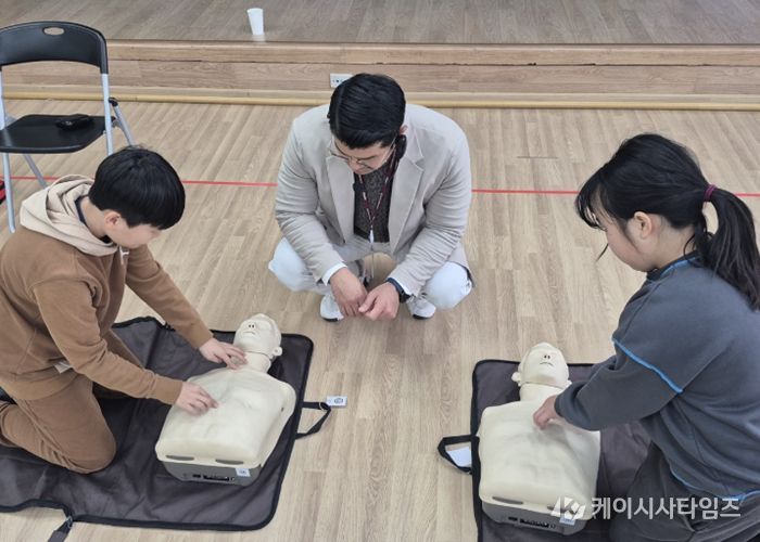 주요 교육 내용은 ▲응급상황 대처요령 ▲자동심장충격기(AED) 사용요령 ▲심폐소생술 교육 및 실습 ▲하임리히법 실습 ▲응급처치 시 주의사항 ▲응급의료 관련 법령 등 학교생활과 일상에서 마주할 수 있는 응급 상황을 실제로 가정해 현장·실습 중심으로 진행했다.