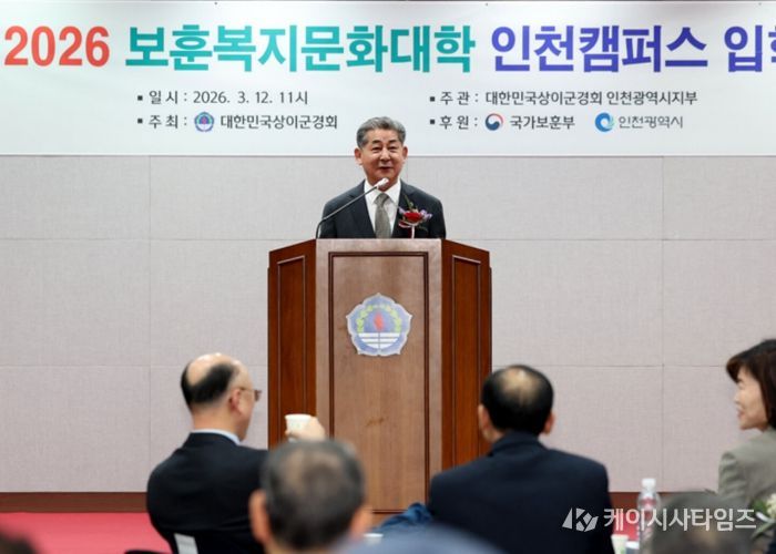 (케이시사타임즈) 인천광역시의회 정해권 의장(국・연수구1)은 12일 인천상이군경회가 주관한 ‘2026년도 보훈복지문화대학 인천캠퍼스 입학식’에 참석해 국가유공자와 보훈 가족을 격려했다.