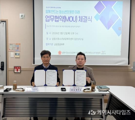 (케이시사타임즈) 남원시가 위탁하고 남원CYA가 운영하는 남원시학교밖청소년지원센터는 지난 12일 남원청년마루와 학교 밖 청소년의 건강한 성장과 자립 지원을 위한 업무협약(MOU)을 체결했다고 밝혔다.