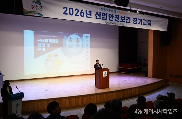 (케이시사타임즈) 장수군은 지난18일 한누리전당 소공연장에서 군 소속 현업 근로자 300여 명을 대상으로 2026년 1분기 산업안전·보건 근로자 정기교육을 실시했다고 밝혔다.