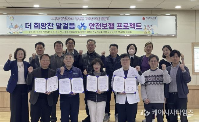 (케이시사타임즈) 부산 금정구 부곡1동은 지난 19일, 어르신의 안전한 보행 환경 조성과 낙상 예방을 위한 '더 희망찬 발걸음, 안전보행 프로젝트' 업무협약(MOU)을 체결했다고 밝혔다.