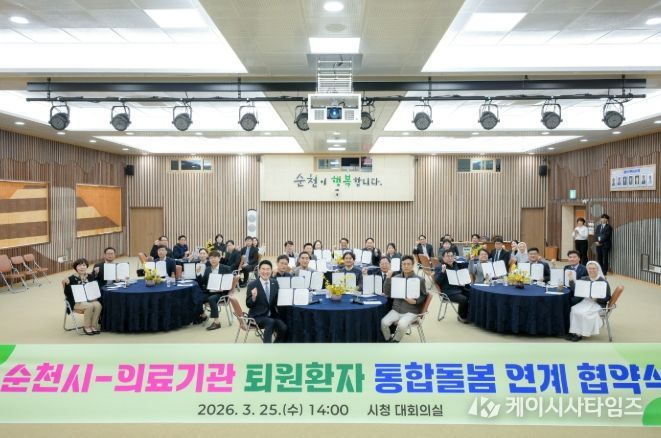(케이시사타임즈) 순천시는 25일 시청 대회의실에서 퇴원환자의 지역사회 안착을 지원하고 촘촘한 의료요양 통합돌봄 사업의 내실화를 위해 22개소 의료기관과 업무 협약을 체결했다고 밝혔다.
