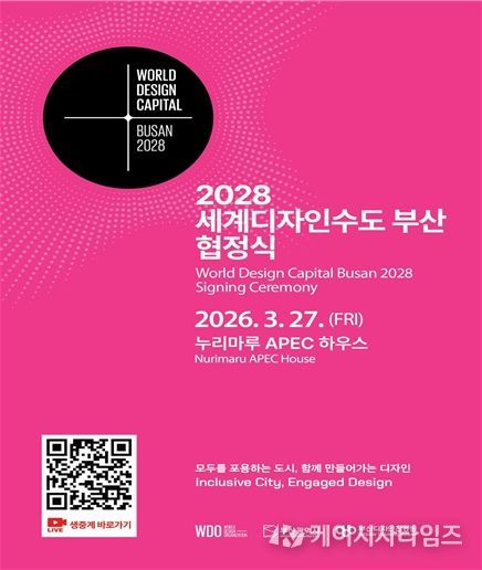 (케이시사타임즈) 부산시는 27일 오후 3시 해운대 누리마루 APEC하우스에서 세계디자인기구(WDO)와 함께 '2028 세계디자인수도 부산' 공식 협정식을 개최한다고 밝혔다.