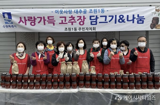 (케이시사타임즈) 수원시 장안구 조원1동 주민자치회는 지난 1일, 복지행정분과 주관으로 ‘사랑가득 고추장 담그기’ 행사를 열고, 직접 담근 고추장을 관내 취약가구 200여 세대에 전달했다.