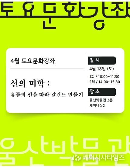 (케이시사타임즈) 울산박물관은 오는 4월 18일 ‘2026년 토요문화강좌’ 두 번째 프로그램을 운영한다고 밝혔다.