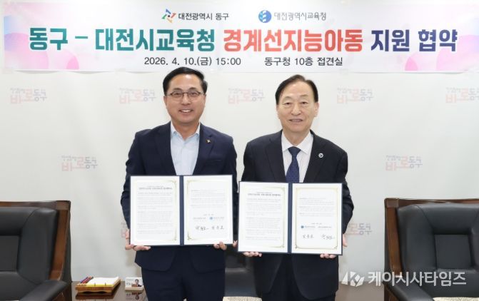 (케이시사타임즈) 대전 동구는 10일 대전시교육청과 ‘경계선지능아동(느린학습자) 성장지원사업’의 원활한 추진을 위해 업무협약을 체결했다고 밝혔다.