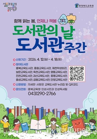 이번 행사는 문화체육관광부와 국가도서관위원회가 제시한 2026년 도서관주간 슬로건 '도서관 속 작은 펼침, 세상을 여는 큰 열림'을 바탕으로, 충북교육청 독서교육 정책 '언제나 책봄'과 연계해 추진된다.