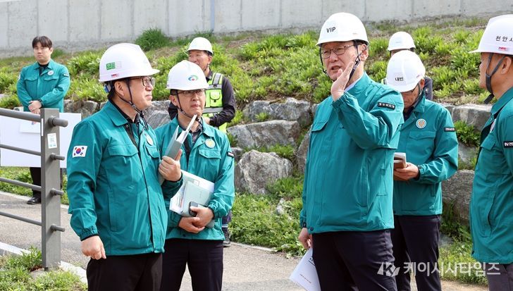 먼저, 천안시 서북구 와촌동에 위치한 천안천 풍수해생활권 종합정비사업장을 찾은 점검반은 사업 추진현황을 보고 받고, 배수펌프장 등 주요 시설을 점검했다.