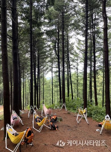 세부 프로그램으로는 ▲리듬 괄사 테라피 ▲밴드 스트레칭 ▲맨발숲길 걷기 등 신체 활력 증진 활동과 ▲해먹 체험 ▲싱잉볼 명상 ▲숲풍경 컬러링 등 오감을 자극하는 산림치유 코스가 다채롭게 구성됐다.