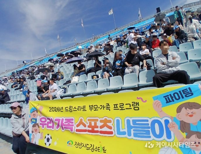 (케이시사타임즈) 천안시 드림스타트는 지난 12일 드림스타트 아동 및 가족 50명과 함께 천안종합운동장에서 열린 ‘천안시티FC’ 홈경기를 직관하며 뜨거운 응원전을 펼쳤다.