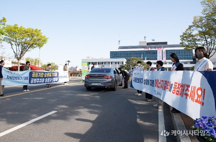 (케이시사타임즈) 구미시는 13일 오전 8시 30분 시청 입구에서 출근길 직원과 시민들을 대상으로 에너지 절약 실천을 위한 ‘공공기관 승용차 2부제 및 공영주차장 5부제’ 동참 캠페인을 펼쳤다.