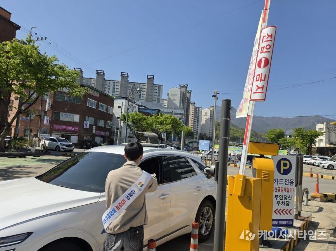 이번 캠페인은 4월 24일까지 2주간 출근시간대를 중심으로 이용객이 집중되는 시간에 맞춰 진행되며, 승용차 5부제 적용 대상 주차장인 금오천, 각산, 구평, 산동 우항공원 공영주차장의 주요 출입구에서 집중적으로 실시된다.