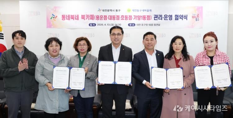 (케이시사타임즈) 대전 동구는 13일 구청장 접견실에서 (사)대전 동구새마을회와 ‘동네북(BOOK)네 북카페’의 안정적인 관리·운영을 위한 업무협약을 체결했다고 밝혔다.