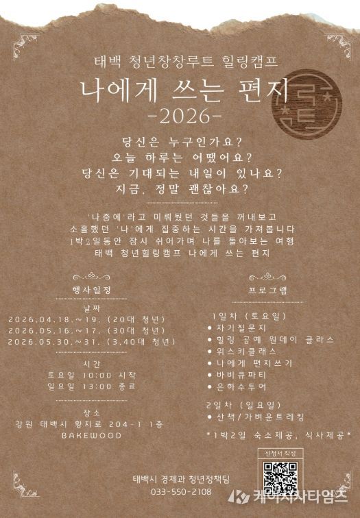 (케이시사타임즈) 태백시는 4월부터 6월까지 지역 청년들의 역량 강화와 사회 참여 확대를 위한 ‘2026년 태백시 청년 리더 아카데미’를 운영한다고 밝혔다.
