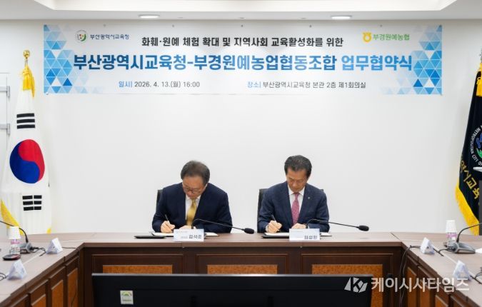(케이시사타임즈) 부산광역시교육청은 지난 13일 시교육청 제1회의실에서 부경원예농업협동조합(조합장 최성환)과 ‘지역사회 교육활성화를 위한 원예체험 프로그램 운영’ 업무 협약을 체결했다고 밝혔다.