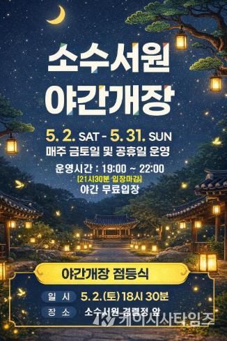 이번 야간개장은 5월 2일부터 31일까지 매주 금·토·일요일과 공휴일에 진행되며, 해당 기간 동안 방문객들은 무료로 야간 관람을 즐길 수 있다.