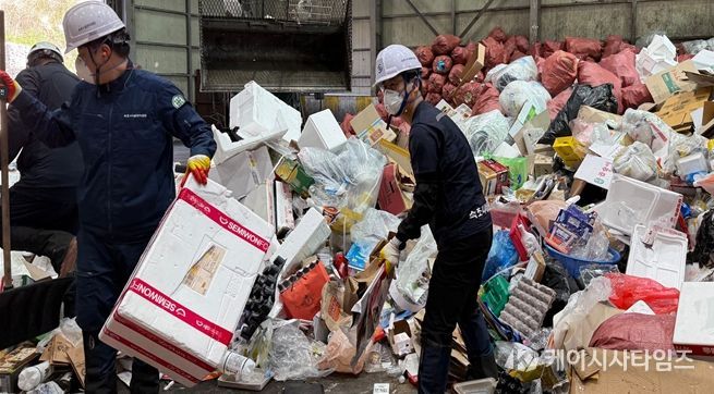 이날 이사장은 재활용 선별 공정에 직접 참여해 폐기물 분류 작업을 수행하며 작업 강도와 근무환경을 체감하는 한편, 현장 안전관리 실태를 면밀히 점검했다. 특히, △ 보호장비 착용 상태 △ 작업 동선 △ 시설 운영 과정 전반을 확인하며 현장에서 발생할 수 있는 위험요소를 직접 확인했다.
