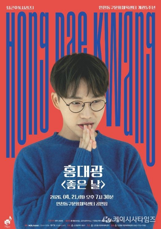 (케이시사타임즈) 인천동구문화체육센터는 업무에 지친 직장인을 대상으로 오는 21일 오후 7시30분 홍대광의 '좋은 날' 공연을 개최한다고 밝혔다.