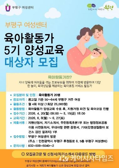 (케이시사타임즈) 부평구는 오는 20일부터 5월 15일까지 육아활동가 20명을 모집한다고 밝혔다.