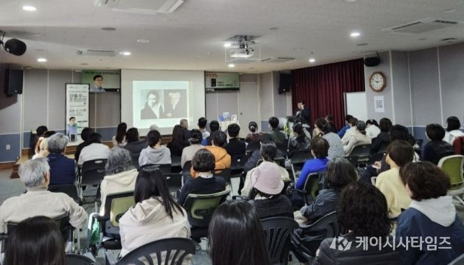 강연은 ‘쇼펜하우어의 행복한 인생’을 주제로 진행됐다. 휴일 벚꽃축제 등 지역 내 여러 행사가 겹쳤음에도 불구하고 많은 주민이 참석해 철학에 대한 높은 관심을 보였다.