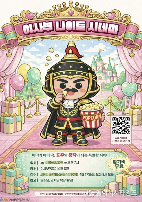 (케이시사타임즈) 삼척관광문화재단은 이사부독도기념관에서 매월 24일 운영하는 야간 문화 프로그램'이사부 나이트 시네마'를 통해 시민 대상 문화 향유 기회를 확대한다.