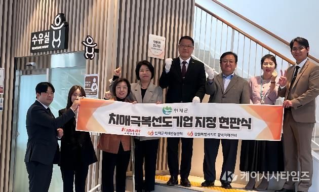 (케이시사타임즈) 인제군보건소 치매안심센터는 지난 14일 내린천 휴게소에서 ‘2026년 치매극복선도기업 현판식’을 개최했다.