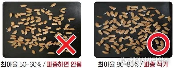 올해 파종할 볍씨의 품질은 지난해 8~9월 벼 등숙기의 고온·다우로 인해 깨씨무늬병과 수발아가 만연해 평년보다 떨어질 우려가 있어, 어느 해보다 철저한 육묘 관리가 필요하다.